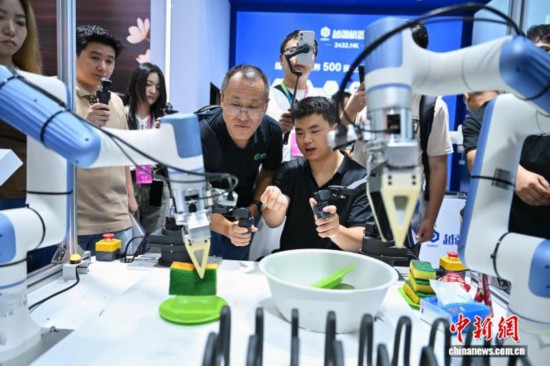 8月8日,2025世界机械会正在经济手艺开辟区北人亦创国际会展核心举行。图为宇树科技展台的机械人肉搏赛吸引不雅众。记者 王紫儒 摄本届大会从题为“让机械人更聪慧,让具身体更智能”。正在乐聚机械人展台前,该公司最新产物“夸父4Pro”正正在打太极拳,一套动做行云流水。该公司副总裁柯实东向记者暗示,它正在打太极的过程中,有很是多的沉心调整以及单脚坐立等一系列复杂动做,这些对机械人的不变性、协调性要求很是高。柯实东说,正在家庭或者工业场景中,机械人不只动做要准、快,还需要再协同到“大脑”思虑,进而完成整套使命的安排以及逻辑的。打太极则很好展示了产物的机能。柯实东暗示,都雅不是目标,机械人最终要为人所用,要能实正赋能千行百业。目前,该公司机械人已用正在搬运分拣、SMT物料出库、产物打包、卡扣安拆等工业智制场景,以及送宾、语音问答等贸易办事场景,同时正在告急呼救、拾掇收纳、擦拭桌面等家庭办事场景也有使用。他引见,乐聚也正在不竭对机械人提“智”增效,“现正在这个版本的机械人正在特定场景的工做效率已能够达到人工的40%至50%,软件方面,我们通过大量的数据采集,‘喂’给具身智能大模子,进而达到流程的优化;硬件方面,我们不竭更新工致手及电池等设备。本年无望将效率提拔至70%至80%。”跟着手艺的成长,机械人不只能干“粗活”,更能干“精细活”,正在ABB公司展台前,两只机械手各自托着6只红酒杯不断晃悠,另一只机械手则快速穿过酒杯之间的空地,晃悠的机械手下,杯中酒一滴未洒。ABB机械人中国研究核心担任人帆引见,这是由ABB新一代OmniCore节制器取三台IRB1300工业机械人共同完成的,机械人径精度可达0。6毫米以内,并以每秒高达1600毫米的速度高速运转。“这证明新一代机械人手艺可正在高精度的同时供给杰出的速度。”同时,该公司还为机械人量身打制了一套进修系统——“Follow me(跟我学)”AI使用处理方案,机械人能够记实操做人员操做东西的动做,最终转换为机械人操做,从而完成机械人打磨工件的法式调试,实现从动打磨处理方案的快速摆设,省去了保守编程的繁琐步调。帆说,“该手艺能让机械人不竭‘进化’,变得更伶俐,特别合用于小批量多品种出产场景,帮帮中小企业降低从动化使用门槛。”