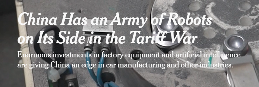 《纽约时报》网坐近期的一篇文章聚焦中国制制业范畴的机械军,认为它们完全改变了中国的制制业,使得中国工场有能力将其出口的很多产物价钱连结正在较低程度,并正在应对特朗普的高关税、应对商业和方面具有劣势。